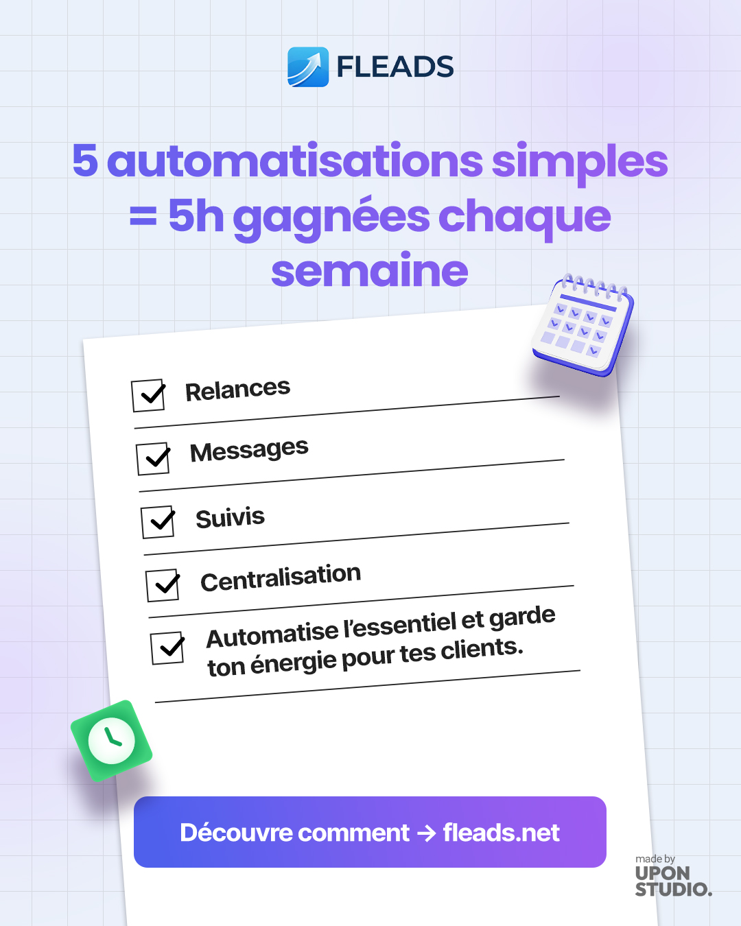 Plus accessible et simple qu’une agence, plus rapide qu’un community manager, Upon Studio crée votre contenu conçu pour performer.